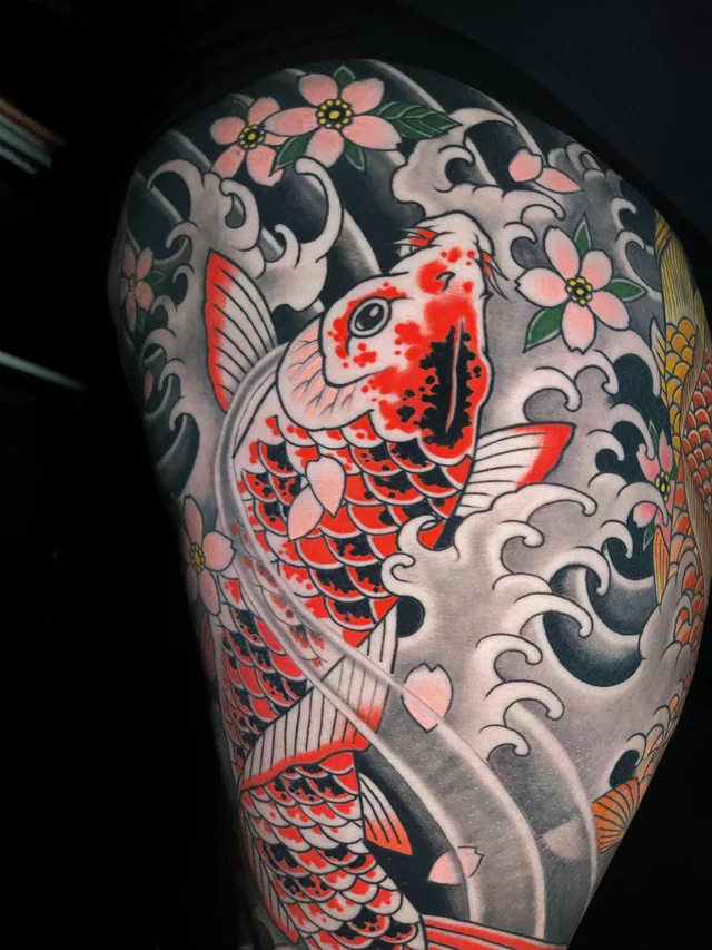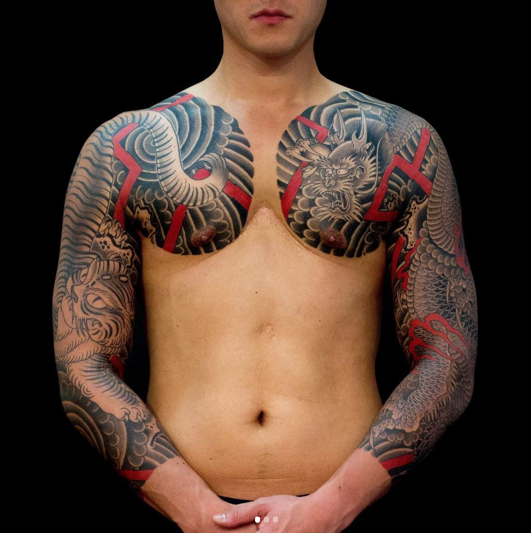 Tradycyjna sztuka tatuażu z Japonii – smoki, fale, kwiaty i legendy, które układają się w rozbudowane kompozycje.