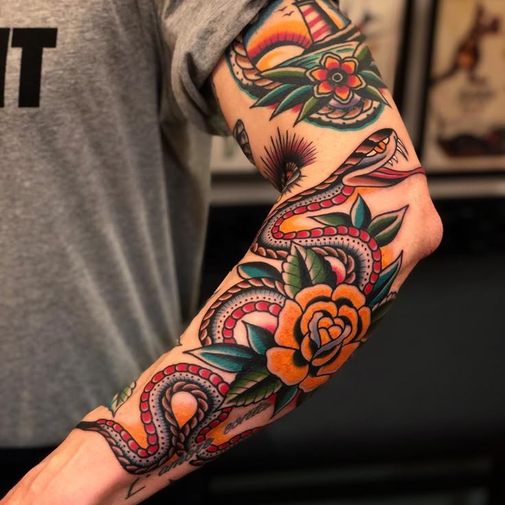 Oldschool to klasyka tatuażu w najczystszej postaci – styl, od którego wszystko się zaczęło. Wywodzi się z pierwszej połowy XX wieku, kiedy tatuaże zyskały popularność wśród marynarzy, wojskowych i poszukiwaczy przygód. Charakterystyczne dla tego nurtu są mocne kontury, ograniczona paleta barw (czerwień, czerń, zieleń, granat, żółć) oraz proste, ale niezwykle wyraziste kompozycje.